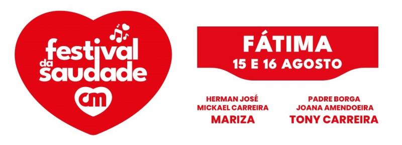 Herman José, Mickael Carreira e Mariza (dia 15), padre José Luis Borga, Joana Amendoeira e Tony Carreira (dia 16) são as figuras de cartaz do Festival da Saudade, evento que vai decorrer no Heliporto de Fátima entre 15 e 16 de Agosto.