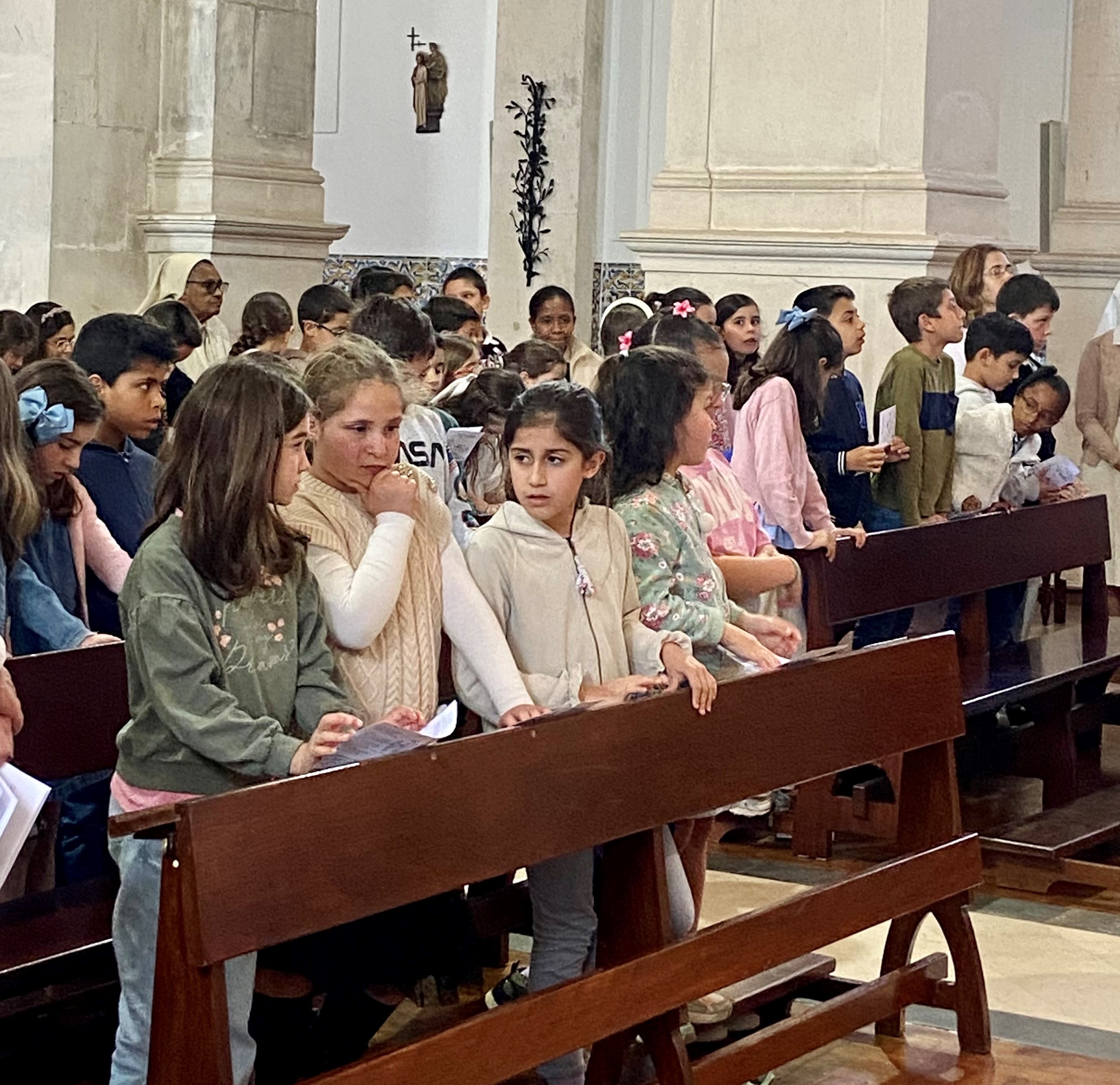 As crianças do 3.º ano da catequese viveram a Festa do Perdão na Igreja Matriz de Fátima, numa celebração presidida pelo pároco padre Leonel Batista. Num ambiente de alegria e simplicidade, a celebração centrou-se na parábola da ovelha perdida, apresentada numa linguagem adaptada aos mais pequenos, ajudando-os a compreender a misericórdia de Deus.